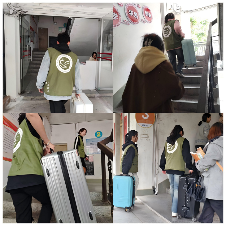 2025年2月23日下午,必赢bwin线路检测中心学生第五党支部组织学生党员和入党积极分子组成青年志愿者服务队,在“一站式”学生社区A5、A6宿舍区开展了“返校暖心服务”主题党日活动,为开学返校学生提供行李搬运等服务,以实际行动彰显初心。