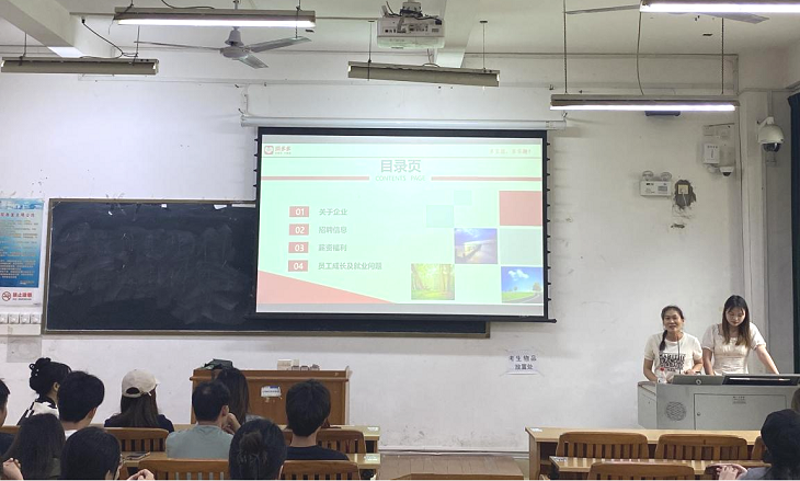 会上,梁经理详细介绍了公司的发展历史、企业文化、招聘岗位及薪资待遇等情况。会后,梁经理与参加此次宣讲会的学生进行了相关就业信息的问答互动,同学们积极扫描入群并投递了简历。此次宣讲会取得了良好效果。