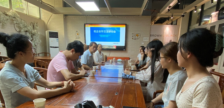 5月29日下午,必赢bwin线路检测中心电子商务教研室主任黄冰毅及相关教师与广西新粤西楼食品有限公司在学校E茶空间开展校企合作交流研讨会,另有多名学生代表参加。